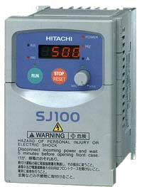 Standardno opremljen sa jedinicom za regenerativno kočenje, SJ100 je idealan za pogone sa konstantnim momentom, gde je visok momenat potreban pri malim brzinama - kao što su transporteri, ekstruderi, mešači, liftovi i dr. Rukovanje je jednostavno; na prednjem panelu su tasteri RUN i Stop, plus potenciometar za zadavanje brzine, a nešto ispod još četiri tastera zaq programiranje. Funkcije su grupisane u menije da bi se omogućilo brzo podešavanje. Inteligentni, programibilni priključci takođe dozvoljavaju programiranje sa udaljenog mesta koristeci PC ili HITACHI hand-held jedinice. U srcu invertora je HITACHI ISPM (inverter system power module) koji sadrži svu energetsku, logičku i zaštitnu elektroniku u kompaktnom bloku. Ova konstrukcija neverovatno povećava pouzdanost i glavni je razlog minijaturizacije invertora takvih snaga. Takođe, ova konstrukcija doprinosi smanjenju cene, približujući invertore širem krugu korisnika.
